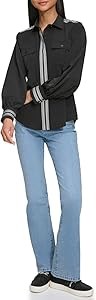 Женская блуза с пуговицами и гросгреновой отделкой от Karl Lagerfeld Paris, 100% полиэстер, универсальный стиль