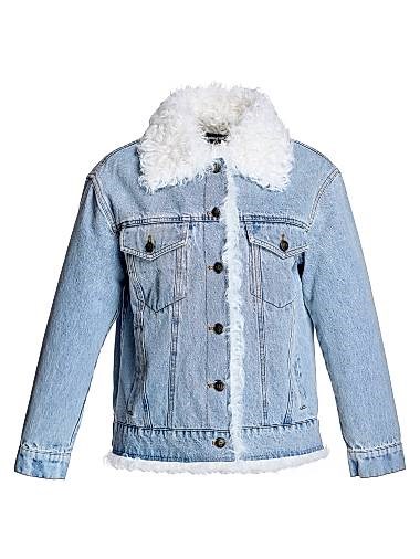 Женская джинсовая куртка с подкладкой из полиэстера и отделкой из меха ламы Калган, Maximilian