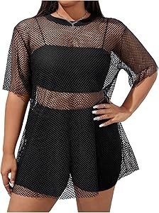 Прозрачные топы с вырезами, сеткой, круглым вырезом горловины, полулонгсливами, опущенными плечами и свободным кроем идеально подходят для полных женщин.