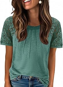 Женская футболка Zeagoo с кружевными рукавами, мягкая ткань: 76% полиэстер, 19% вискоза, 5% спандекс