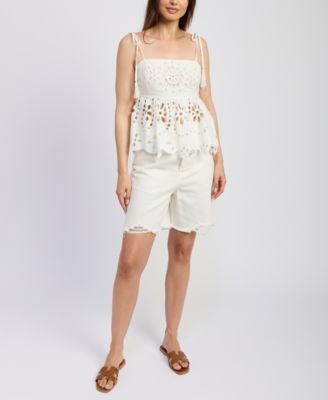 Женская хлопковая блузка En Saison с вышивкой и завязками на плечах в стиле пеплум