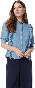 Женская хлопковая рубашка с рюшами и расклешенными рукавами на пуговицах от Sam Edelman
