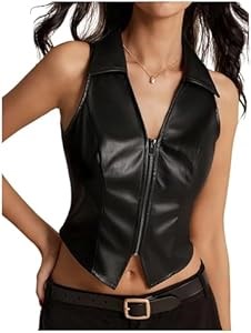 Особенности: Без рукавов, v-образный вырез, облегающий стиль, застежка на молнии, из кожзаменителя, подходит для концертов, вечеринок, летних выходов и встреч.