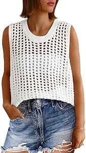 Особенности: Летние безрукавки с классическим круглым вырезом, прозрачная сетка, сексуальная вязаная сетка, повседневный свободный крой, однотонные базовые цвета, легкий пуловер, модная кружевная майка 2025 года.