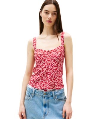 Женская майка с гипюровым цветочным принтом и сердцевидным вырезом от Tommy Jeans, широкие бретели