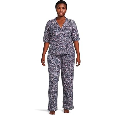 Погрузитесь в комфорт и стиль с пижамным комплектом Karen Neuburger с коротким рукавом и вырезом с лацканами.