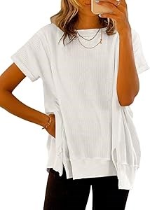Особенности: Футболка с вафельной текстурой и круглым вырезом, свободный крой, короткие рукава, базовый однотонный стиль с разрезами по бокам. Отличный базовый элемент гардероба, позволяющий создавать множество стильных образов.