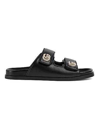 Сандалии Marmont изготовлены из гладкой кожи, имеют регулируемые двойные ремешки и акценты с кристаллами в форме логотипа GG от Gucci для элегантности.