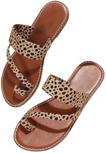 Женские летние сандалии Gorglitter с леопардовым принтом и открытым носком на плоской подошве для прогулок