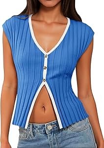 - Трендовый дизайн: Эти рифлёные топы с пуговицами и контрастной отделкой имеют стильную V-образную горловину и разрез спереди, что делает их универсальным дополнением вашего гардероба для весенне-летнего сезона 2025 года.
