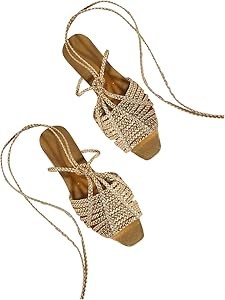 Элегантные золотые сандалии со шнуровкой и плетеным дизайном добавляют стильности и подчеркивают вашу утонченность.