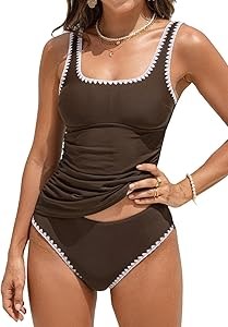 Дизайн: Стильный женский танкини комплект с квадратным вырезом и низкими плавками. Регулируемые широкие бретели обеспечивают надежную и комфортную посадку, идеально подходящую для отдыха на пляже или у бассейна.