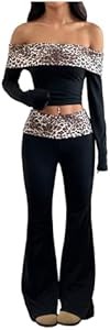 Дизайн: Костюм состоит из леопардового лонгслива и расклешенных брюк, идеально подходит для casual, уличной моды, активного отдыха, свиданий и покупок.