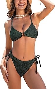 Дизайн: Два предмета в комплекте: купальник с текстурированной блестящей тканью, кольцом спереди и регулируемыми перекрестными завязками сзади для идеальной посадки. Низкие плавки с боковыми завязками и средней вырезкой, обеспечивают баланс умеренного покрытия и стиля.