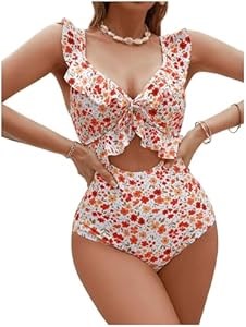 Женский купальник Verdusa с цветочным рисунком, воланами и бантом, летний монокини из 82% полиэстера и 18% эластана