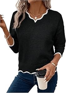 Особенности: свободный женский свитер с V-образным вырезом, падающими плечами, волнистым краем, длинным рукавом и свободным кроем. Отлично сочетается с джинсами, юбками или леггинсами, а также с ботинками или кроссовками для модного образа.