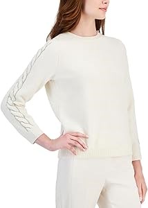 Женский свитер с отделкой и круглым вырезом Anne Klein, 75% полиэстер, 15% акрил, 10% нейлон