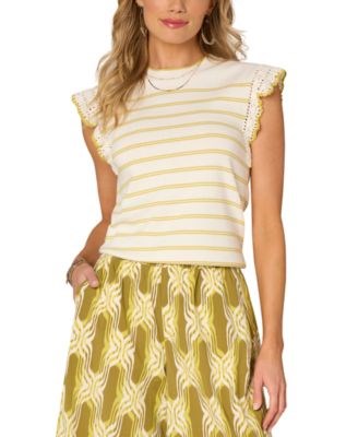 Создайте неповторимый образ с помощью этого свитера с полосками и кружевными рукавами-флуттер от Democracy.