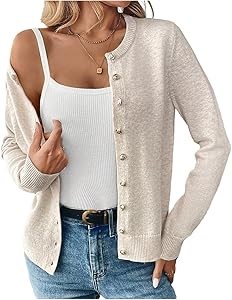 Женский теплый и удобный трикотажный кардиган Gorglitter с металлическими пуговицами и длинными рукавами