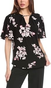 Женский топ Anne Klein с принтом, вырезом в виде гнезда и рукавами-колокольчиками, 95% полиэстер