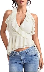 Женский топ с асимметричными рюшами и завязками, V-образный вырез, для особых случаев от Milumia