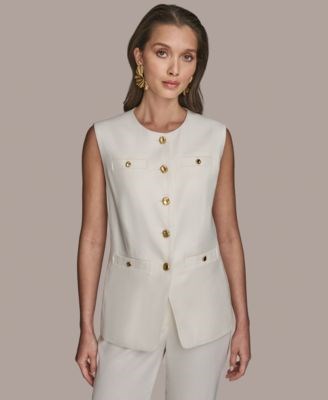 Этот элегантный жилет без воротника от Donna Karan New York придаст вашему образу стильный вид благодаря золотым кнопкам.
