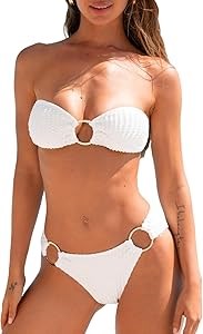 Женское бикини CUPSHE без бретелек с топом-трубкой и текстурированным материалом, украшенным кольцами