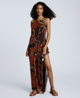 Двойные рюши на подоле, это платье высшего качества от Kenneth Cole с абстрактным принтом. Стильный переход от мини к макси помогает создать эффектный силуэт.