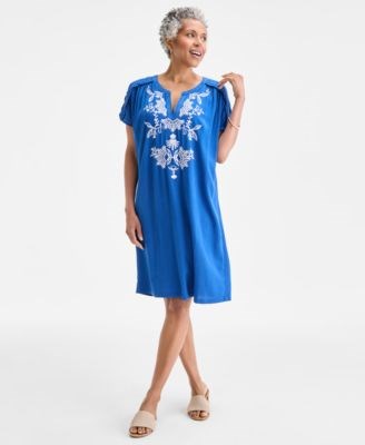 Женское платье Style &, Co с вышивкой и передним разрезом, короткими рукавами, эксклюзив магазина
