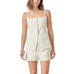 Летний жилет с легким акцентом льна, выполненный на тонких бретелях, обеспечивает свободу движений благодаря вырезу внизу.
