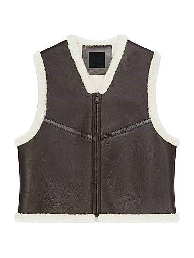 Жилет из овечьей шерсти Givenchy на молнии без рукавов с V-образным вырезом, кожаная спина