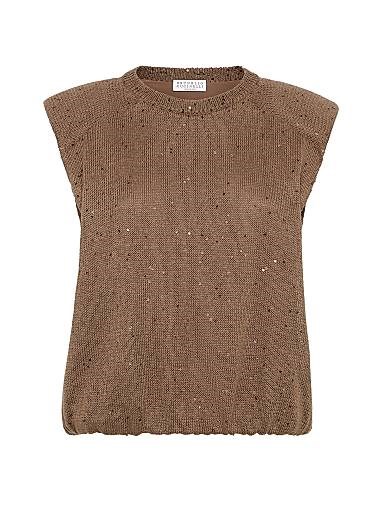 Жилет из шелка и льна с эластичным подолом Diamond от Brunello Cucinelli, Италия