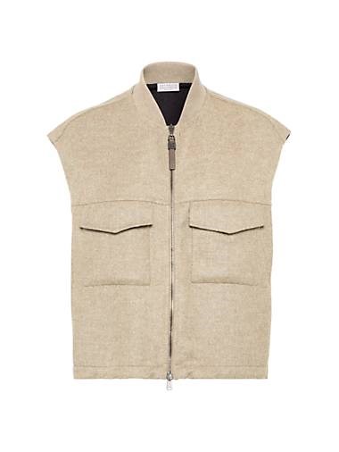 Жилет из шерсти Brunello Cucinelli с двусторонней молнией и карманами, ручная работа