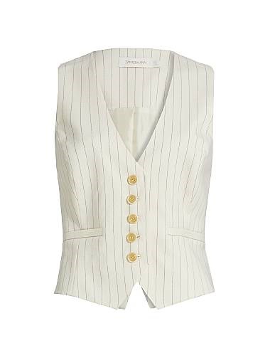 Жилет из шерсти Zimmermann с полосатым узором отличается регулируемым поясом сзади.