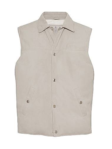 Жилет из замши Brunello Cucinelli с воротником-рубашкой, 100% натуральная кожа, утеплитель из гусиного пуха, Италия