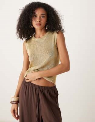 Золотистый топ AWARE с металлическим открытым вязанием, рибаной и прямой посадкой, размер S
